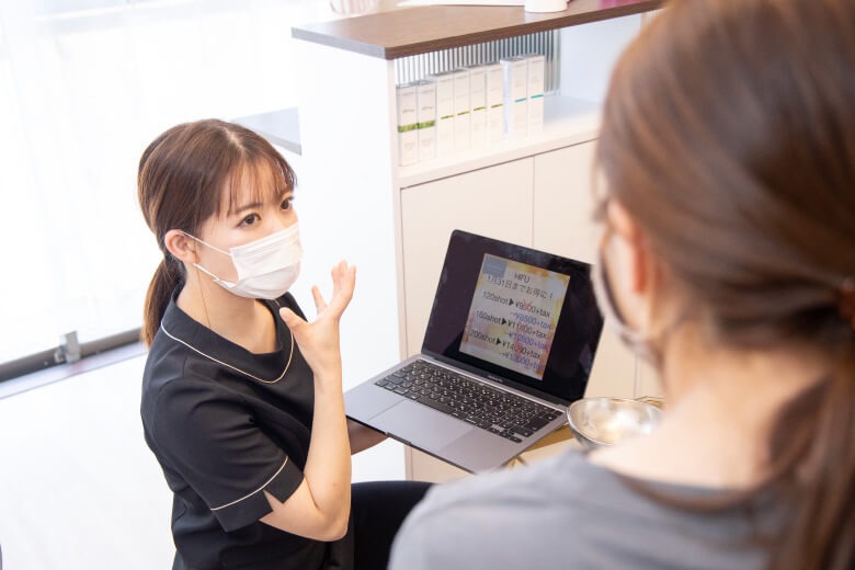 お肌のタイプは十人十色のため、お客様一人ひとりの肌トラブルに合わせた丁寧な施術を行います。